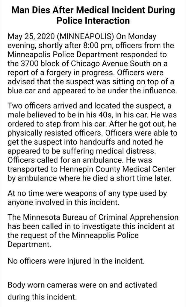 There has been the paroxysm of anger—and yes violence—over the response to the incident, because after all—this was the original view of the actions of Officer Chauvin and his band of killers on what was done to George Floyd.